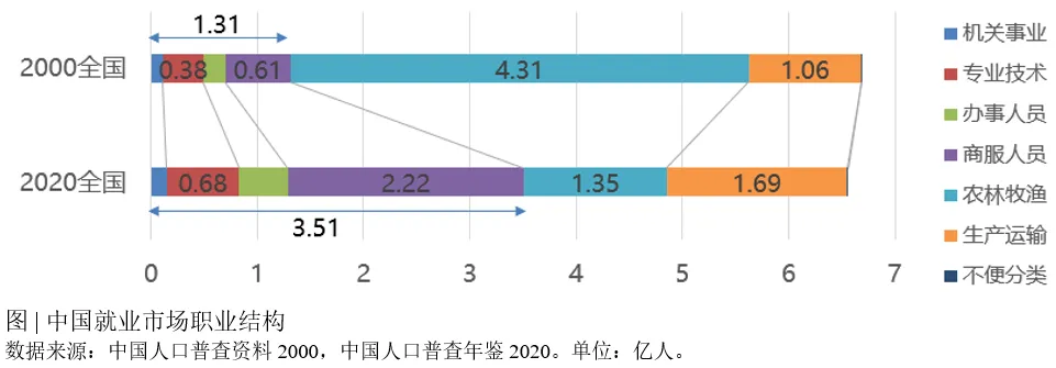 数据来源:中国人口普查资料2000,中国人口普查年鉴2020。单位:亿人。
