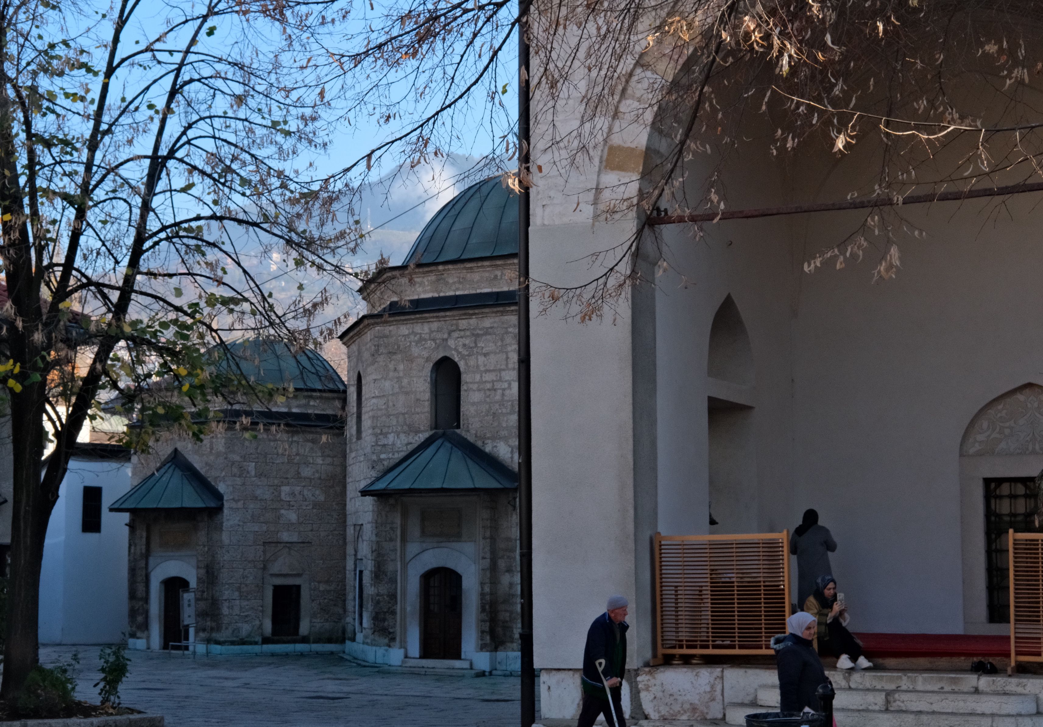 老城区的石板路通向巴什察尔希亚集市,那里的空气中混合着咖啡、羊肉和铁的气味。走过一排排售卖香料与地毯的小铺,街角传来一阵宣礼声——那是加齐•胡斯列夫贝格清真寺,萨拉热窝最古老的心脏,它的历史可以追溯到16世纪,奥斯曼宫廷的御用国师米马尔•希南(Mimar Sinan)设计了这座建筑——这位奥斯曼时代最伟大的建筑师常被与同时期的米开朗琪罗相比较。院内的喷泉仍在涓涓作响,信徒在水声中净手,准备礼拜。围墙外,行人脚步匆匆,没人因为宣礼声而停下。