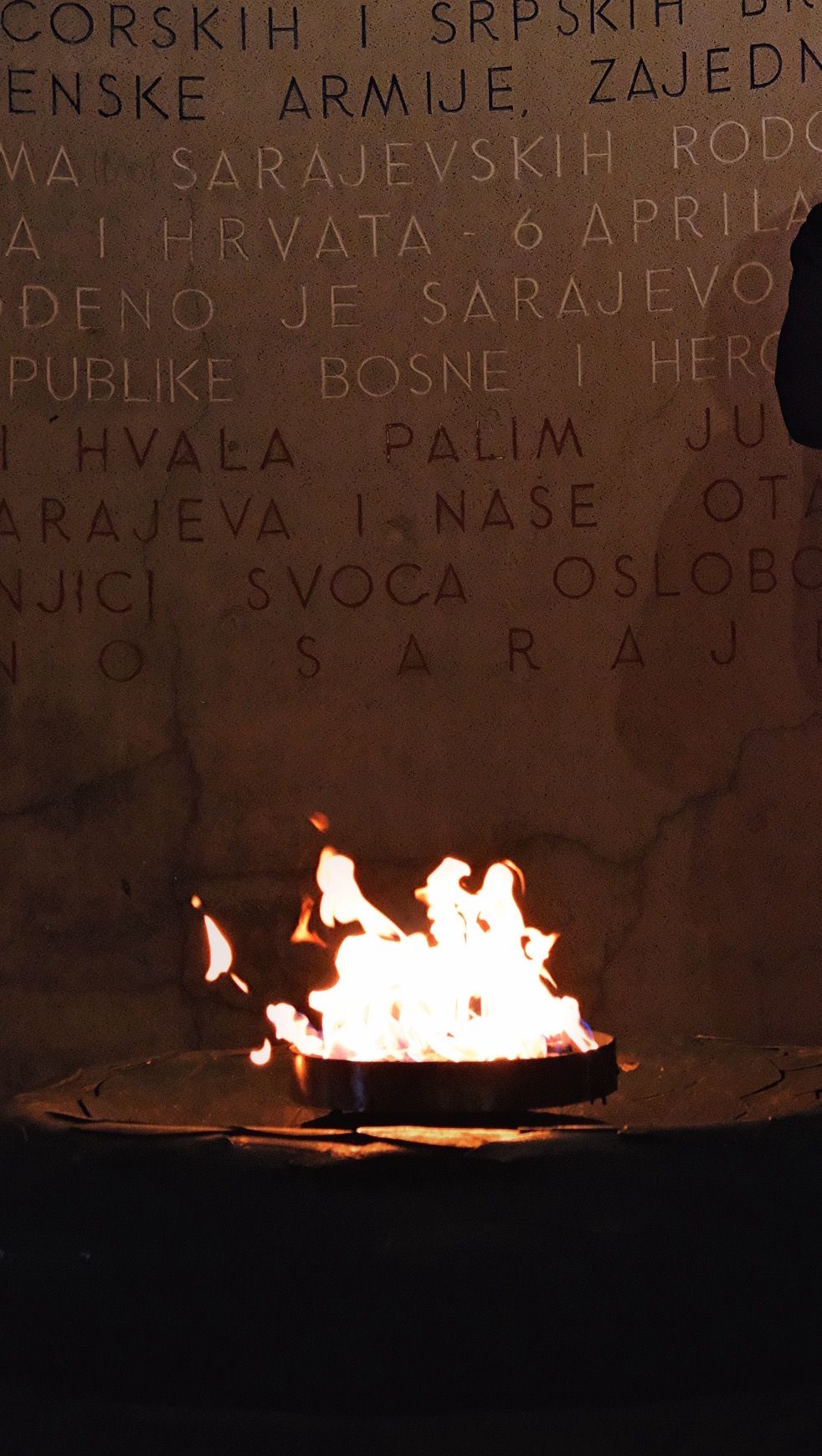 这里之于萨拉热窝如同皮卡迪利(piccadilly)广场之于伦敦,无数的车流在这里经过。在萨拉热窝的短短几天,我数次经过这里。许多游人都会驻足片刻,凑近火焰取暖,它像是城市中央的一个大型壁炉。有支持巴勒斯坦的团体在火焰旁拉起横幅抗议,一张告示牌上,内塔尼亚胡的照片被打上了一个大大的红叉。