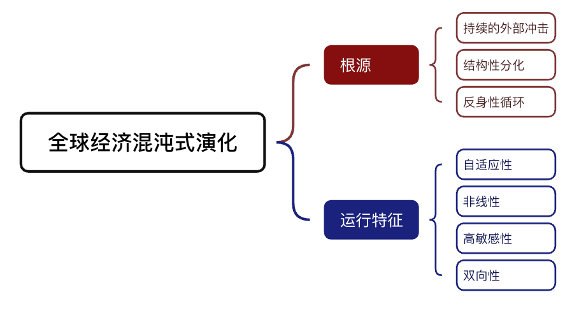 造成当前混沌式非线性演化的根源有三:一是开放的耗散结构下持续的外部冲击。疫情冲击、地缘震荡和贸易保护主义重塑全球秩序,全球经济脱离统一周期的范式,多重压力相互叠加、彼此放大,迫使各经济体依赖更高成本的政策手段来维持稳定。二是结构性分化对经济发展节奏的扰动。不同主要经济体所处的经济周期出现明显错位,政策取向存在明显差异,外溢效应在全球范围内相互叠加,使系统协调性下降、波动更易被放大。三是反身性循环加剧经济系统不稳定性。在高度不确定与高度敏感的环境中,市场预期与政策行为之间的互动愈发紧密,二者形成自我强化的反馈循环。经济系统的运行路径呈现出更强的情绪驱动特征,预期管理从辅助工具变为核心变量,系统稳定性更依赖信任维持而非结构支撑。