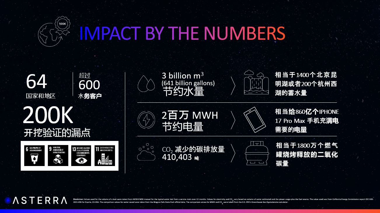 Jason Shang:ASTERRA 始终将联合国可持续发展目标(SDGs)与企业社会责任(ESG)作为技术创新与业务发展的核心驱动力。我们的解决方案直接支撑SDG 6(确保所有人获得安全用水和可持续管理的卫生设施)、SDG 9(建设具有韧性和可持续性的基础设施,促进包容和可持续的工业化,并推动创新),SDG 11(建设包容、安全、有韧性且可持续的城市与人类住区)和SDG13 (采取紧急行动,应对气候变化及其影响。自2017年以来,ASTERRA的技术已帮助全球城市节约超过30亿立方米的可饮用水,减少200万兆瓦时(MWh)的能源消耗,并避免约41万吨二氧化碳排放,持续创造可量化的环境效益。