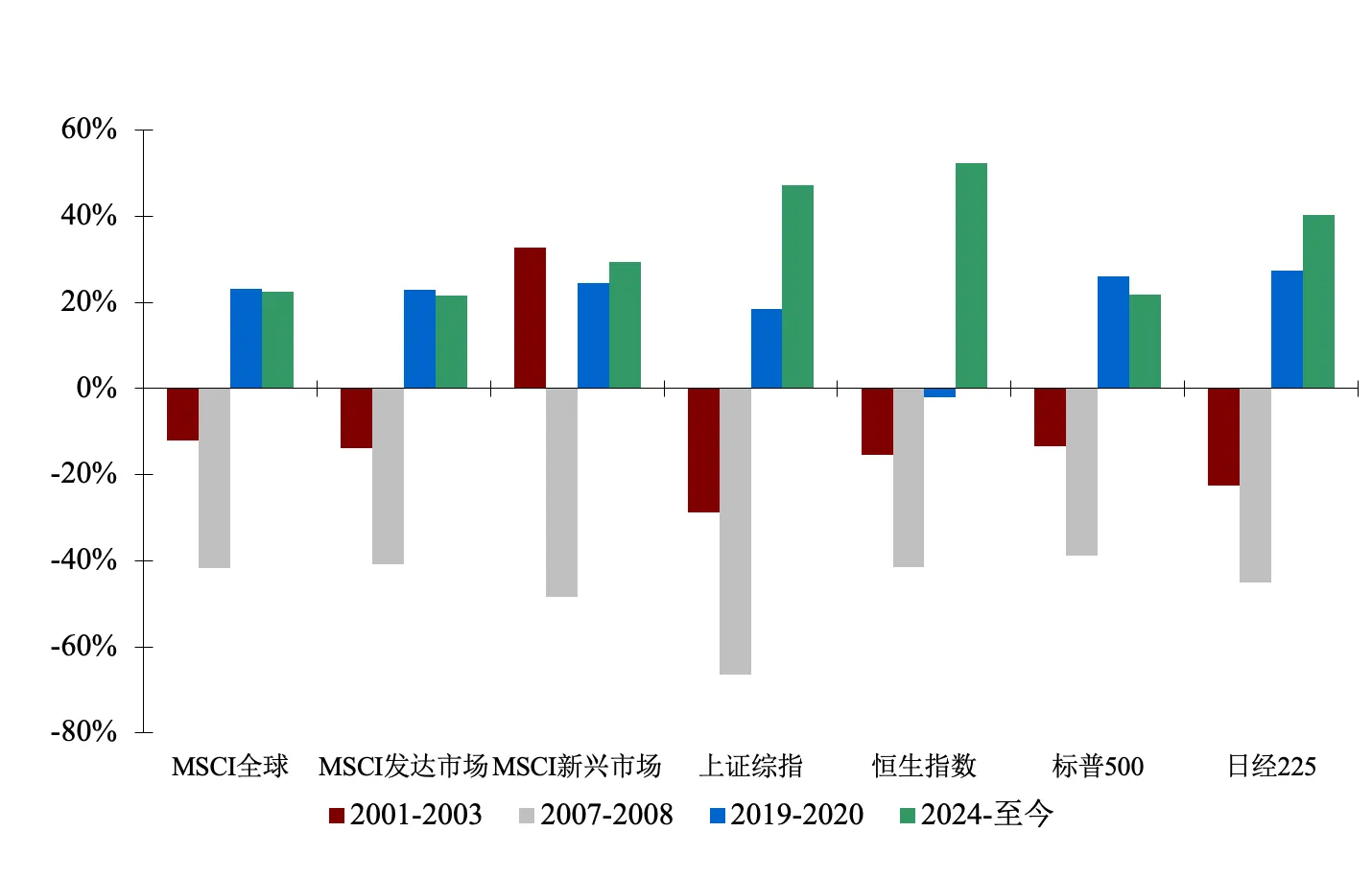 在全球宏观前景与已出现的市场信号共同作用下,2026年的经济情形更可能呈现“低通胀、弱就业、增长放缓但维持韧性”的特征。结合历次降息周期中大类资产的表现,可以看到未来一年不同资产类别的走势将呈现出更加明确的结构分化。