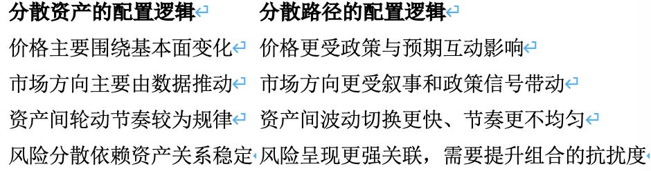 随着全球经济进入临界混沌阶段,资产之间的相关性上升、波动模式加快切换,传统依靠资产数量来分散风险的方法面临新的挑战。在当前结构下,风险资产与无风险资产的同步波动更为常见,资产价格对政策变化和市场预期的反应更加集中,分散路径逐渐成为更具适应性的配置方式。