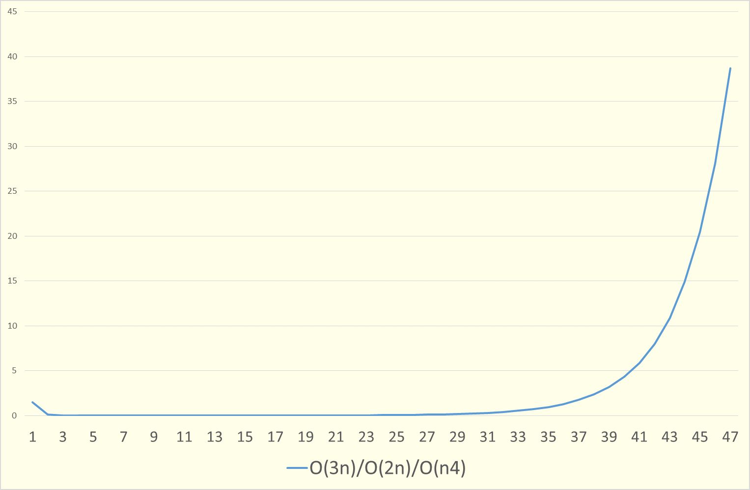 而这个二维多项式与三维多项式(O(3n) )相比,亦是小巫见大巫。见下图。
