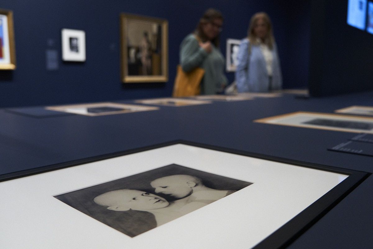 为了实现这种时间的叠加感和记忆的多孔性,卡尔莫纳没有选择将111幅作品分散在两个楼层,而是将它们浓缩在一个特殊、开放的空间中,并且将博物馆常见的“白盒子”展厅改为深蓝色调。这种布局让访客可以一眼望尽所有作品,藉此模仿了记忆的多孔性与交织性,将抽象的思绪通过视觉对话展现。