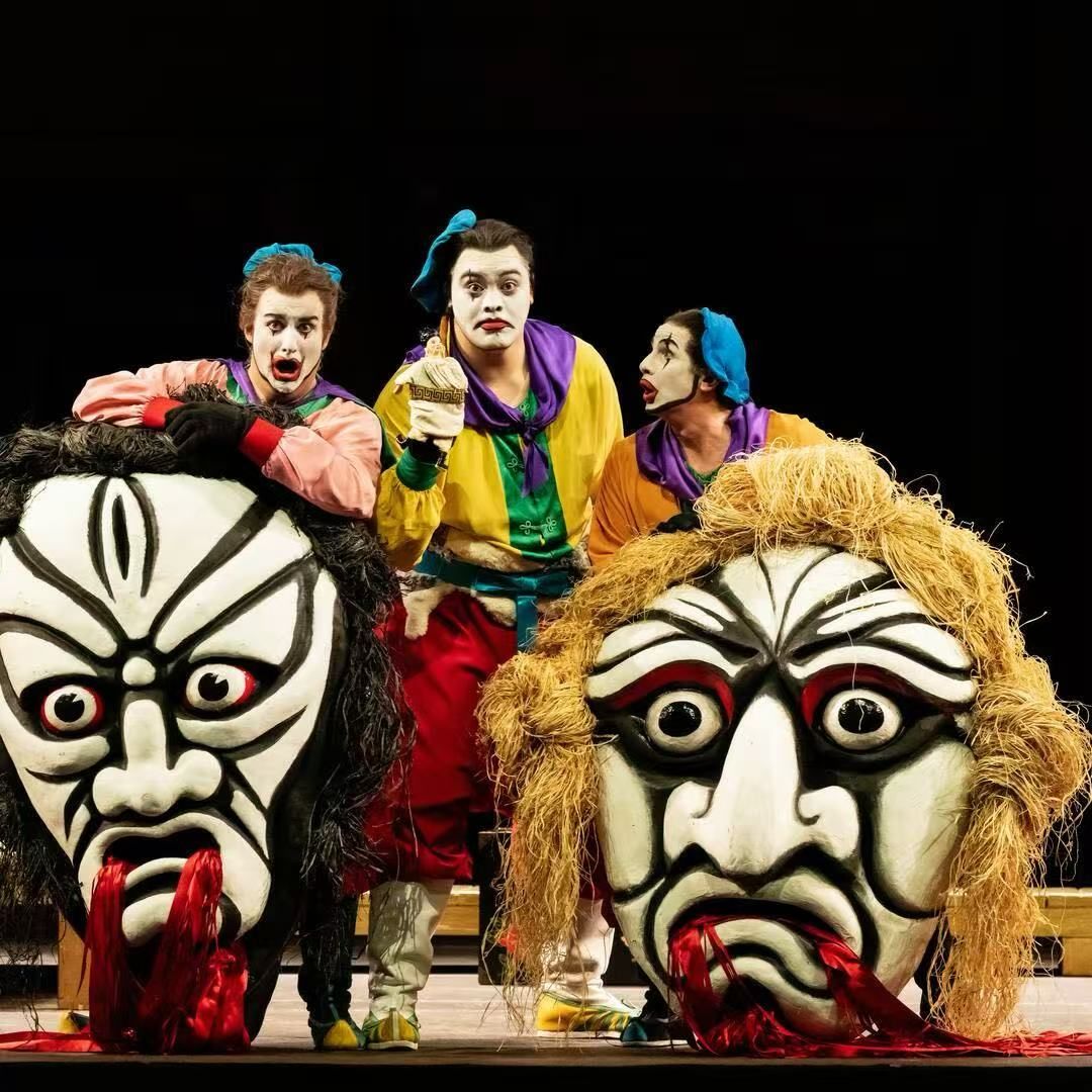 《图兰朵》演出现场从苏黎世到伦敦,张小猛面对的是一种截然不同、却同样复杂的“传统”。在英皇的制作中,三位臣子全程戴着面具;导演杰克•弗尼斯(Jack Furness)的概念是:这三个人象征“戴着面具生活的人”,是权力系统中的工具,被迫执行残酷命令。面具不仅强化了神秘与仪式感,也呼应了意大利戏剧传统,尤其是威尼斯共和国时期的即兴喜剧(Commedia dell’arte)。在这种戏剧里,面具长期被用作角色身份的象征,通过夸张的形象与固定动作表达人物性格和社会位置。在《图兰朵》中,面具既是对角色心理与权力逻辑的视觉化处理,也暗示了欧洲戏剧史上对人物身份与仪式性的传统表达。