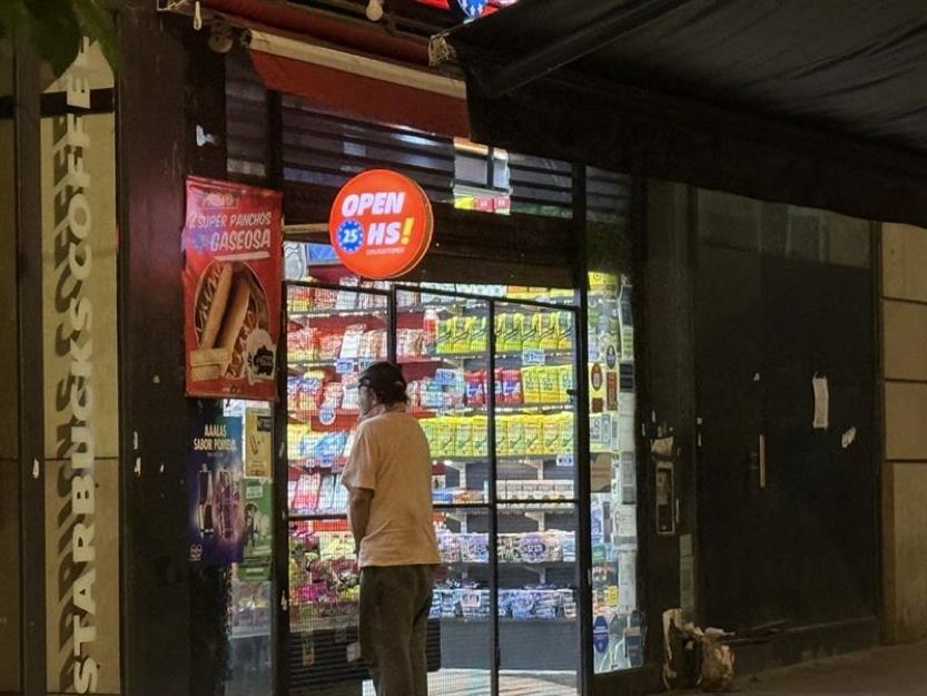 图:布宜诺斯艾利斯通宵营业的便利店用铁网们把流浪汉挡在店外
