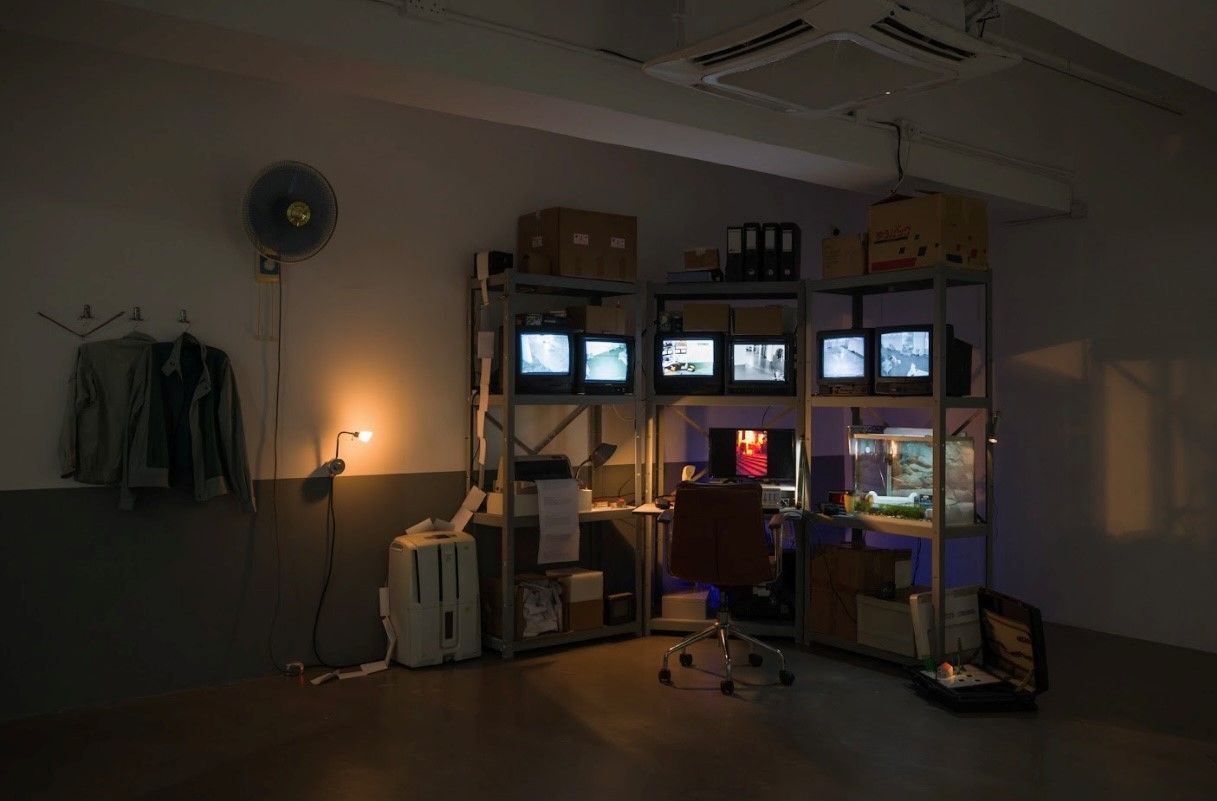 《展场夜更》,“易过借房”展览现场 香港Para Site艺术空间,2026年 摄影:黄思聪