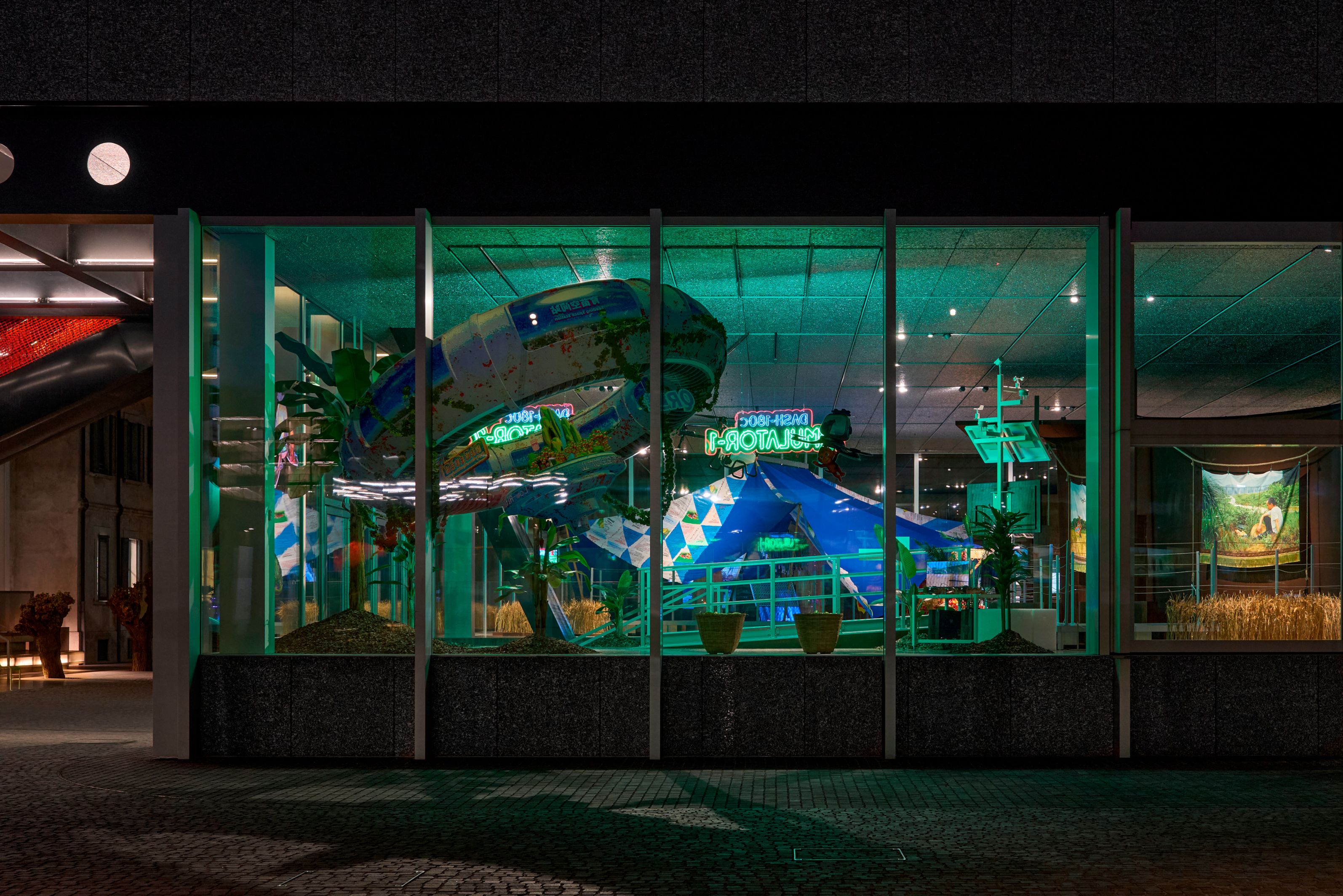 在位于米兰的Prada基金会总部的建筑骨架里,至今留存着二十世纪初杜松子酒蒸馏厂的记忆,农产谷物曾经在此经历工业化的提纯。在这座拥有农工业历史背景的建筑中,曹斐带着她最新艺术项目“超级农场”(DASH)进入了现场,试图厘清那些隐形于日常背后、被技术塑造和重组的农业供应链条。