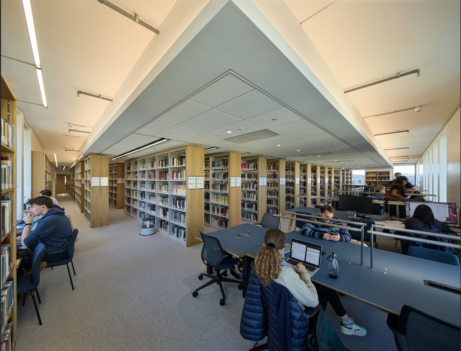 建筑师Watts 提到,设计中有一个重要原则:每个空间至少承担三种功能。大礼堂既是公共聚集空间,也是咖啡与休闲区域、学习与工作空间,必要时还可以转化为表演空间。剧院同时是英语系讲堂,电影院也是音乐教学空间。换句话说,每一寸空间都被高强度使用。一座建筑要欢迎所有人,就必须让所有人都能进入。无障碍通行、静谧空间、哺乳室和“更衣空间(Changing Places)” 等设施,旨在确保这是大学中无障碍程度最高的建筑。