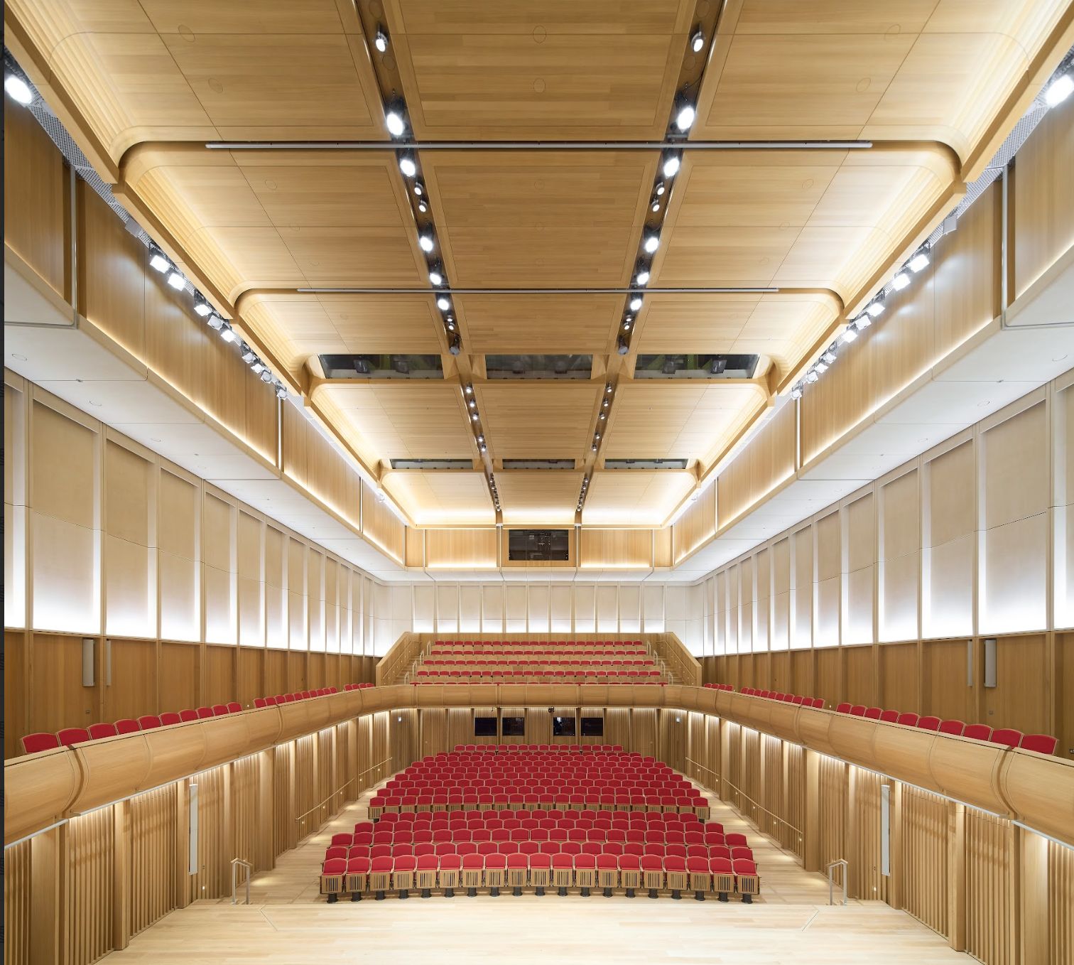 ( 图18 牛津苏世民人文中心音乐厅 View of the Sohmen Concert Hall, Stephen A. Schwarzman Centre for the Humanities, University of Oxford. Photograph © Hufton + Crow)