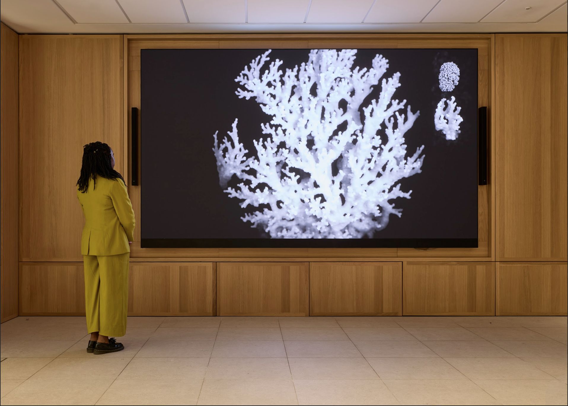 Anadol的创作过程是: 先用AI“阅读”庞大的自然与文化数据,来自博物馆、科研机构的历史档案、自然图像与生态信息多达170多万份。再把这些数据通过检索、排序, “转译”为不断流动的视觉景观。这些画面不是预先制作好的,而是可实时生成(generative)、持续变化(non-static), 像“会做梦的档案”(dreaming archive)。